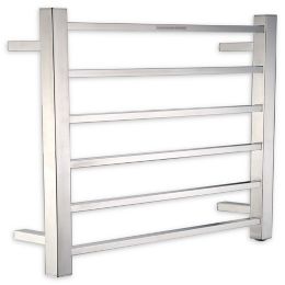 Bath electric heated towel rail rack manufactured from stainless steel with 11 sleek heated towel rails to hang bath towels or a bathrobe.